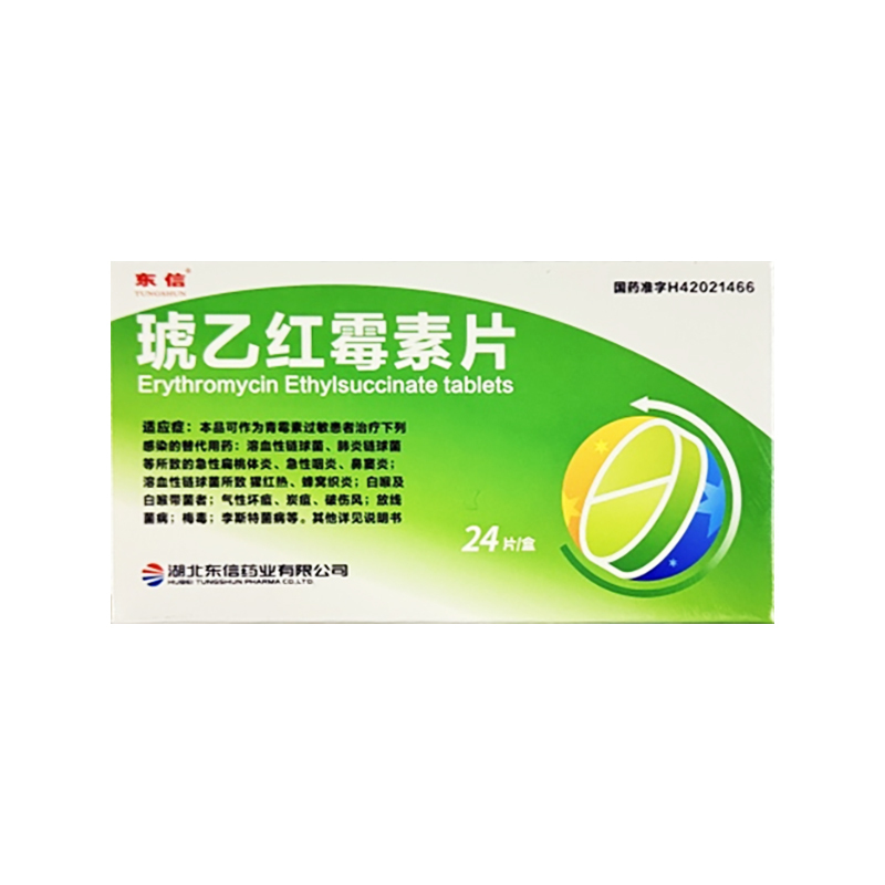 本品属大环内酯类抗生素,为红霉素的琥珀酸乙酯,在胃酸中较红霉素稳定。对葡萄球菌属(耐甲氧西林菌株除外)、各组链球菌和革兰阳性杆菌均具抗菌活性。奈瑟菌属、流感嗜血杆菌、百日咳鲍特氏菌等也对本品敏感。本品对除脆弱拟杆菌和梭杆菌属以外的各种厌氧菌亦具抗菌作用。对军团菌属、胎儿弯曲菌、某些螺旋体、肺炎支原体、立克次体属和衣原体属和衣原体也有抑制作用。