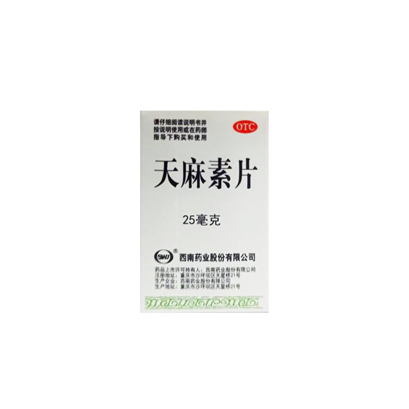 【主要成份】每片含天麻素25毫克。白色片辅料为:淀粉、糊精、硬脂酸镁、十二烷基硫酸钠。