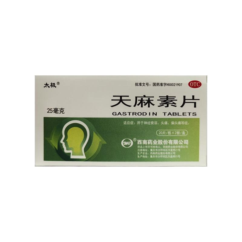【主要成份】每片含天麻素25毫克。白色片辅料为:淀粉、糊精、硬脂酸镁、十二烷基硫酸钠。