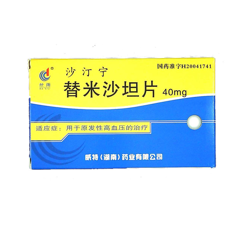 【用法用量】成人:推荐剂量40mg(1片),每日一次,口服。根据降压效果,遵医嘱在20mg~80mg间调整剂量。最大剂量80mg(2片),每日一次。本品可与噻嗪类利尿药如氢氯噻嗪合用,有协同降压作用。若欲加大药物剂量,必须考虑到替米沙坦发挥最大降压作用时间,通常在治疗开始后四至八周。 肾功能不全的病人:轻或中度肾功能不良的患者,服用本品不需调整剂量。 肝功能不全的病人:轻或中度肝功能不全的患者,本品用量每日不应超过40mg。 老年人:服用本品不需调整剂量。 儿童:本品对于儿童的安全性及有效性数据尚未建立。