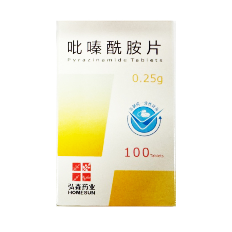 【药代动力学】口服后在胃肠道内吸收迅速而完全。广泛分布于全身组织和体液中,包括肝、肺、脑脊液、肾及胆汁。脑脊液内药浓度可达血浓度的87%一105%。蛋白结合率约1O%-20%。口服2小时后血药浓度可达峰值,T1/2为9-10小时,肝、肾功能减退时可能延长。主要在肝中代谢,水解成吡嗪酸,为具有抗菌活性的代谢物,继而羟化成无活性的代谢物,经肾小球滤过排泄。24小时内以代谢物排出70%(其中吡嗪酸约33%),3%以原形排出。血液透析4小时可减低吡嗪酰胺血浓度的55%,血中吡嗪酸减低50%-60%。