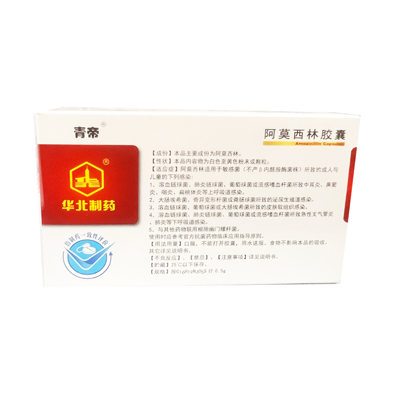 【适应症/功能主治】 阿莫西林适用于敏感菌(不产β内酰胺酶菌株)所致的下列感染: 1.溶血链球菌、肺炎链球菌、葡萄球菌或流感嗜血杆菌所致中耳炎、鼻窦炎、咽炎、扁桃体炎等上呼吸道感染。 2.大肠埃希菌、奇异变形杆菌或粪肠球菌所致的泌尿生殖道感染。 3.溶血链球菌、葡萄球菌或大肠埃希菌所致的皮肤软组织感染。 4.溶血链球菌、肺炎链球菌、葡萄球菌或流感嗜血杆菌所致急性支气管炎、肺炎等下呼吸道感染。 5.急性单纯性淋病。 6.本品尚可用于治疗伤寒、伤寒带菌者及钩端螺旋体病;阿莫西林亦可与克拉霉素、兰索拉唑三联用药根除胃、十二指肠幽门螺杆菌,降低消化道溃疡复发率。